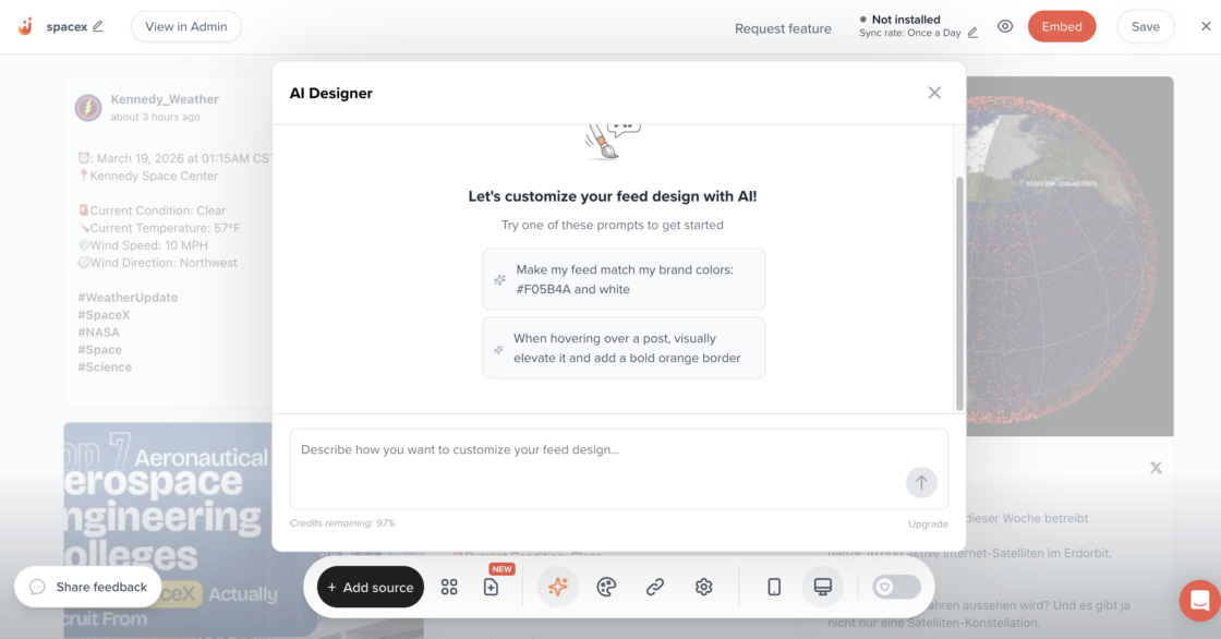 - Managing social media feeds: An AI-designed Instagram social wall can help you display and moderate social posts on your website, while ensuring the feed remains on-brand.