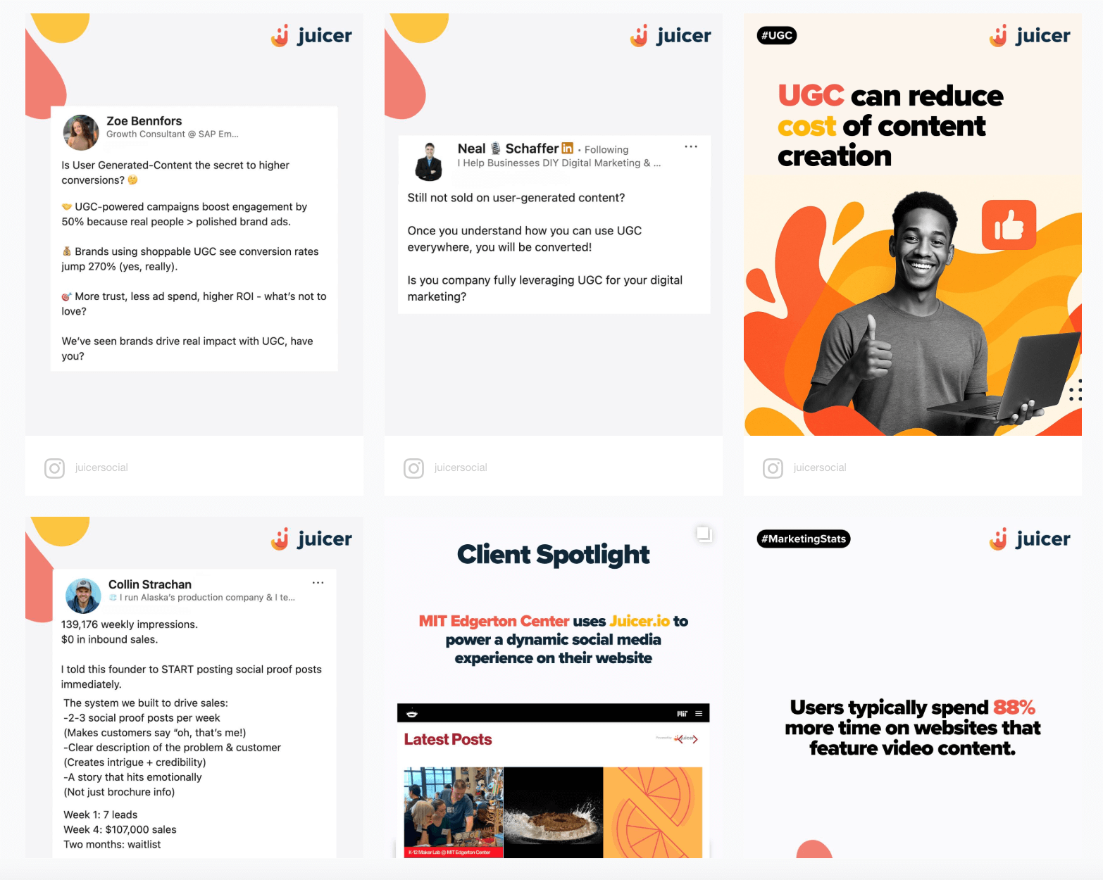 A platform like Juicer reduces that risk. No, it’s doesn’t replace your human, technical talent; what it does is frees their brains and calendars to focus on what moves your business forward — creative campaigns, research, UX, and growth.