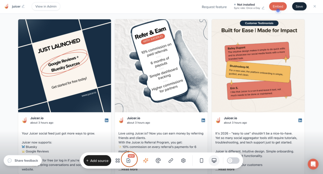 February 2026 brings four meaningful new features to Juicer – giving you more control over your feed content, more places to pull from, and a more engaging experience for your visitors.