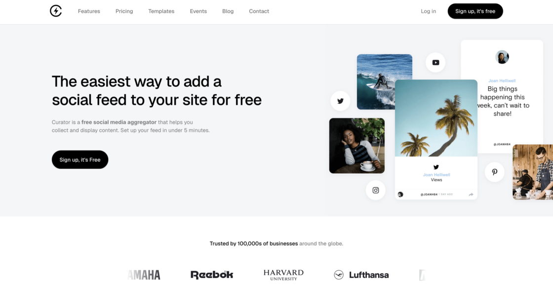 Curator.io is a versatile Walls.io alternative that pulls content from multiple social platforms into a single, customizable feed. Its moderation tools and easy embedding make it an ideal tool for teams looking for other options.