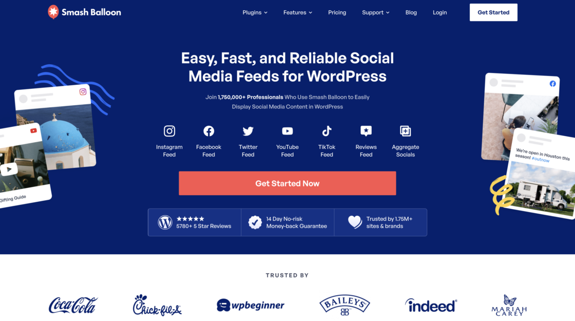 Smash Balloon lets you quickly create responsive, multi-platform social feeds on WordPress with no coding required, making it a user-friendly walls.io alternative for embedding Instagram, Facebook, Twitter, and YouTube content.